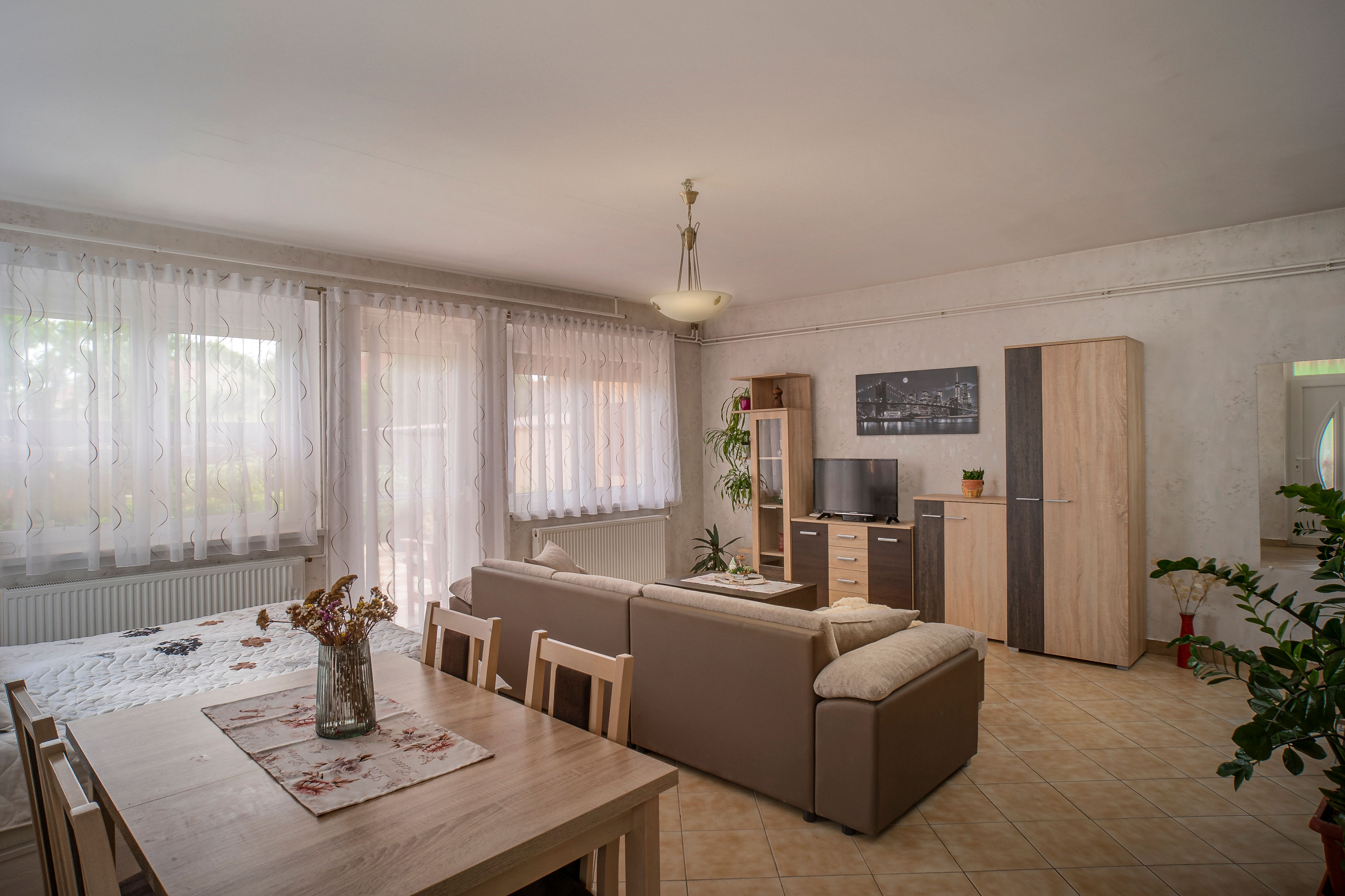 Földszinti apartman, amely ideális maximum 2 felnőtt + 2 gyermek részére. A 2x2 férőhely, egy légtérben található. Ezért csak családoknak vagy pároknak ajánljuk.